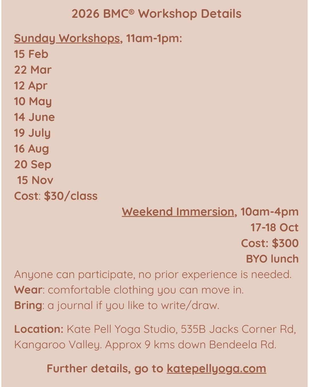 Kate offers a range of workshops, retreat and intensive sessions through out the year. To keep up to date about upcoming offering sign up for newsletters below or follow on social media.